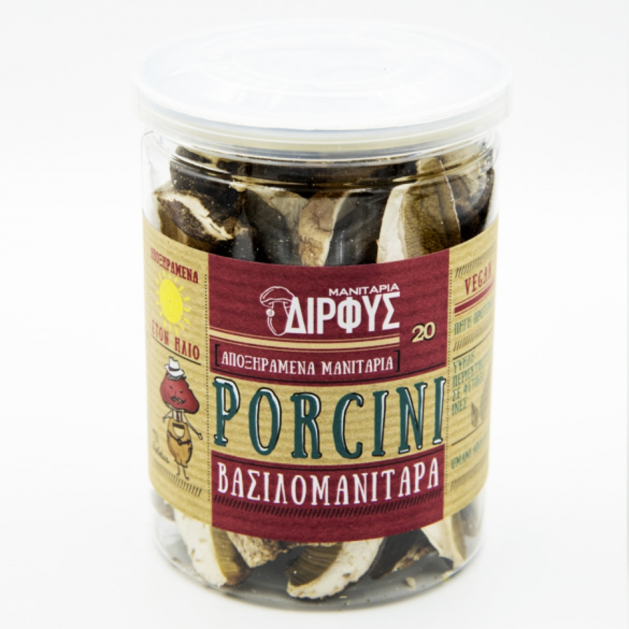 Τα αποξηραμένα ΜΑΝΙΤΑΡΙΑ ΔΙΡΦΥΣ είναι μια γευστική και μοναδική συλλογή από οκτώ διαφορετικά προϊόντα: Βασιλομανίταρα, Μαύρη Τρομπέτα, Κανθαρέλλες, Μίγμα του Δάσους, Μίγμα της Φάρμας, Μίγμα Πλευρώτους και Λενιτνούλα, όλα προσεκτικά επιλεγμένα με το χέρι άγρια ​​μανιτάρια από τα ελληνικά δάση, σε συνδυασμό με το καλλιεργημένο μας γκρι και χρυσαφί μανιτάρια Πλευρώτους, Λενιτνούλα και λευκό Αγαρικό. Τα άγρια ​​μανιτάρια μας, αναπτύσσονται κάτω από έλατα, βελανιδιές ή οξιές, όπου ο υγρός καιρός και η ηλιοφάνεια δημιουργούν ένα ιδανικό μικροκλίμα για σταθερά και καθαρά μανιτάρια. Επιλέγουμε τα πιο ποιοτικά μανιτάρια και τα ταξινομούμε, τα καθαρίζουμε και τα στεγνώνουμε αμέσως μετά τη συγκομιδή, χρησιμοποιώντας την πιο φιλική προς το περιβάλλον τεχνολογία που υπάρχει: τον ήλιο μας! Η τεχνολογία μας ηλιακής ξήρανσης βελτιώνει σημαντικά το χρώμα, την υφή και τη γεύση των αποξηραμένων μανιταριών, αυξάνοντας την ένταση των γεύσεων. Το κύριο πλεονέκτημα της ηλιακής ξήρανσης είναι ο φυσικός εμπλουτισμός των μανιταριών με βιταμίνη D, καθώς η εργοστερόλη μετατρέπεται σε εργοκαλσιφερόλη υπό την έκθεση στο φυσικό φως UV του ήλιου. Συσκευασμένο σε υψηλής ποιότητας βάζα Pet 30g, Clear tin 25g ή οποιαδήποτε άλλη συσκευασία σύμφωνα με τις ανάγκες του πελάτη.